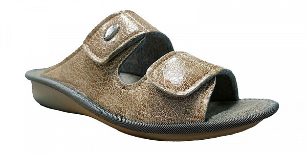 - Материалы верха на натуральной основе (натуральная кожа, текстиль) и открытая носочная часть создают оптимальную терморегуляцию стопы в процессе ношения тапочек